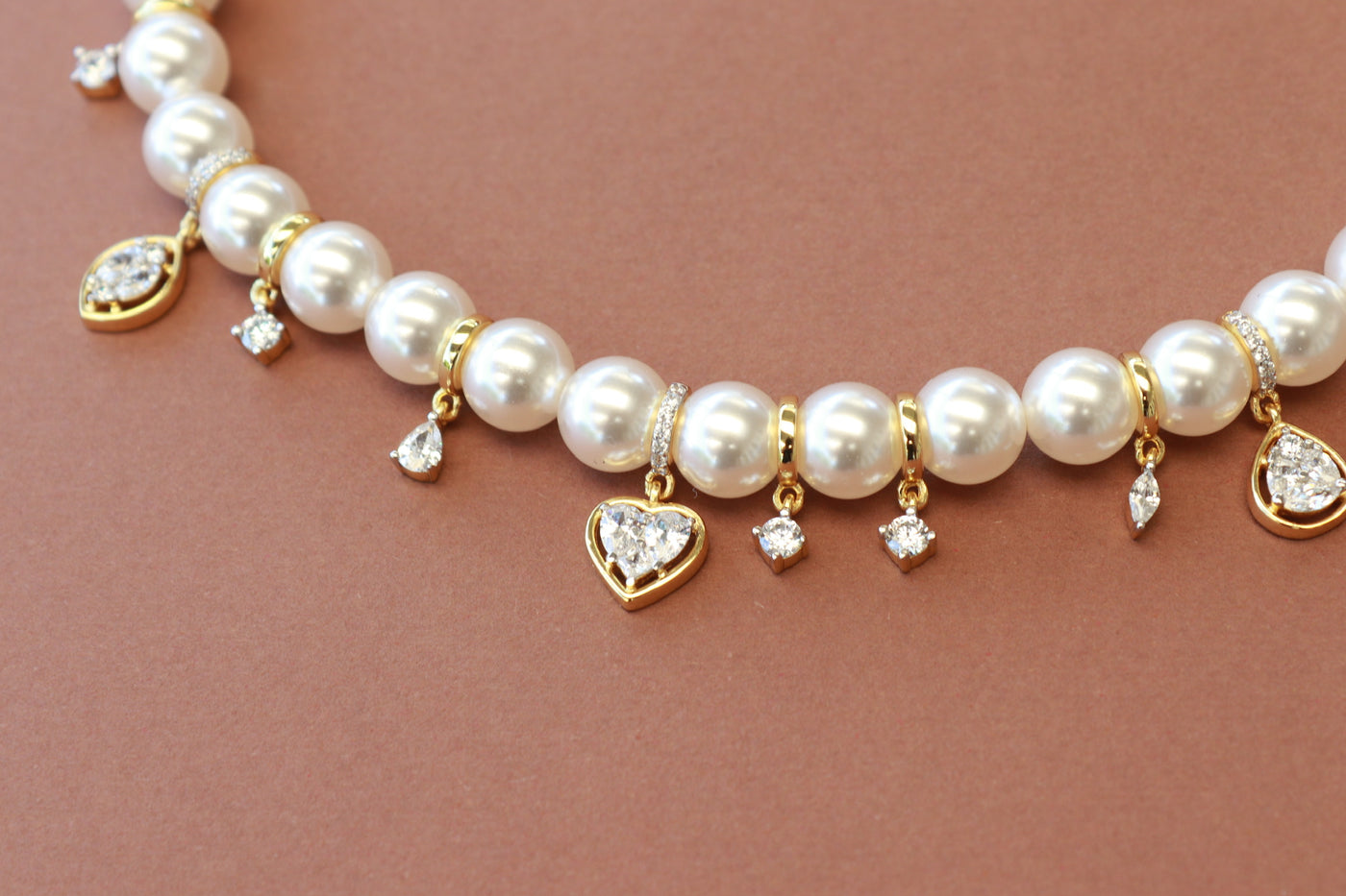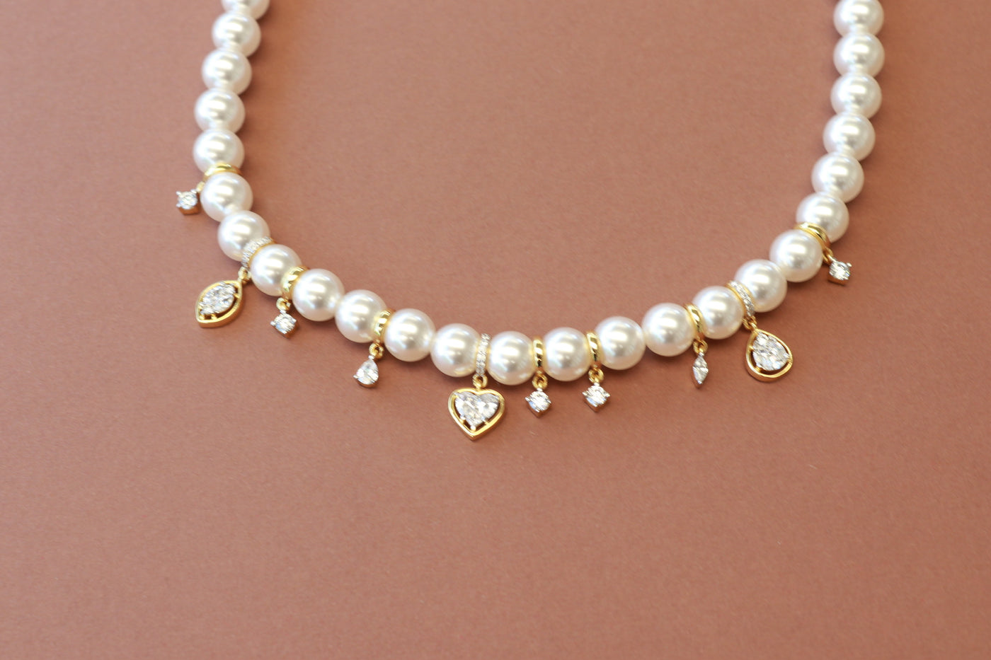 A modern take on timeless elegance. The Celestial Pearl Drop features luminous pearls accented with delicate gold vermeil details and shimmering stone charms that dance with every movement.